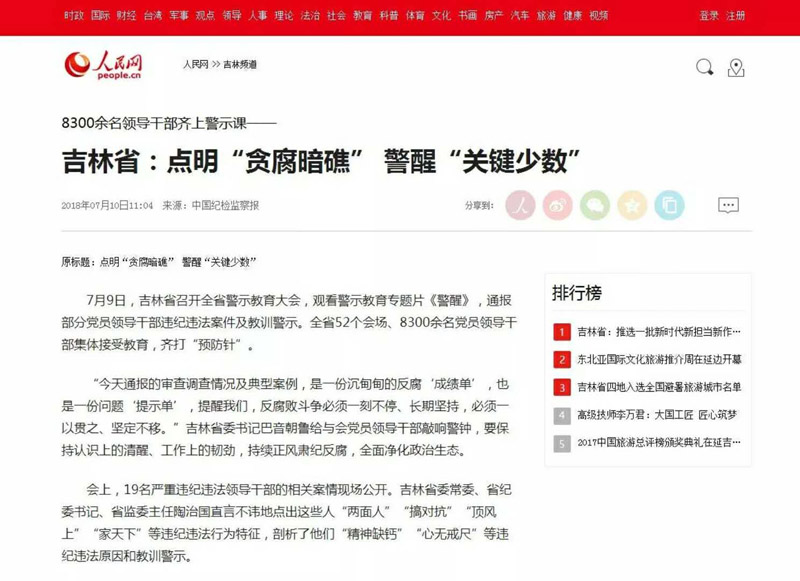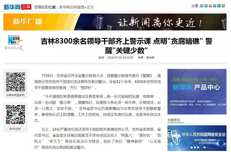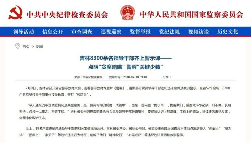 吉林8300余名领导干部齐上警示课——